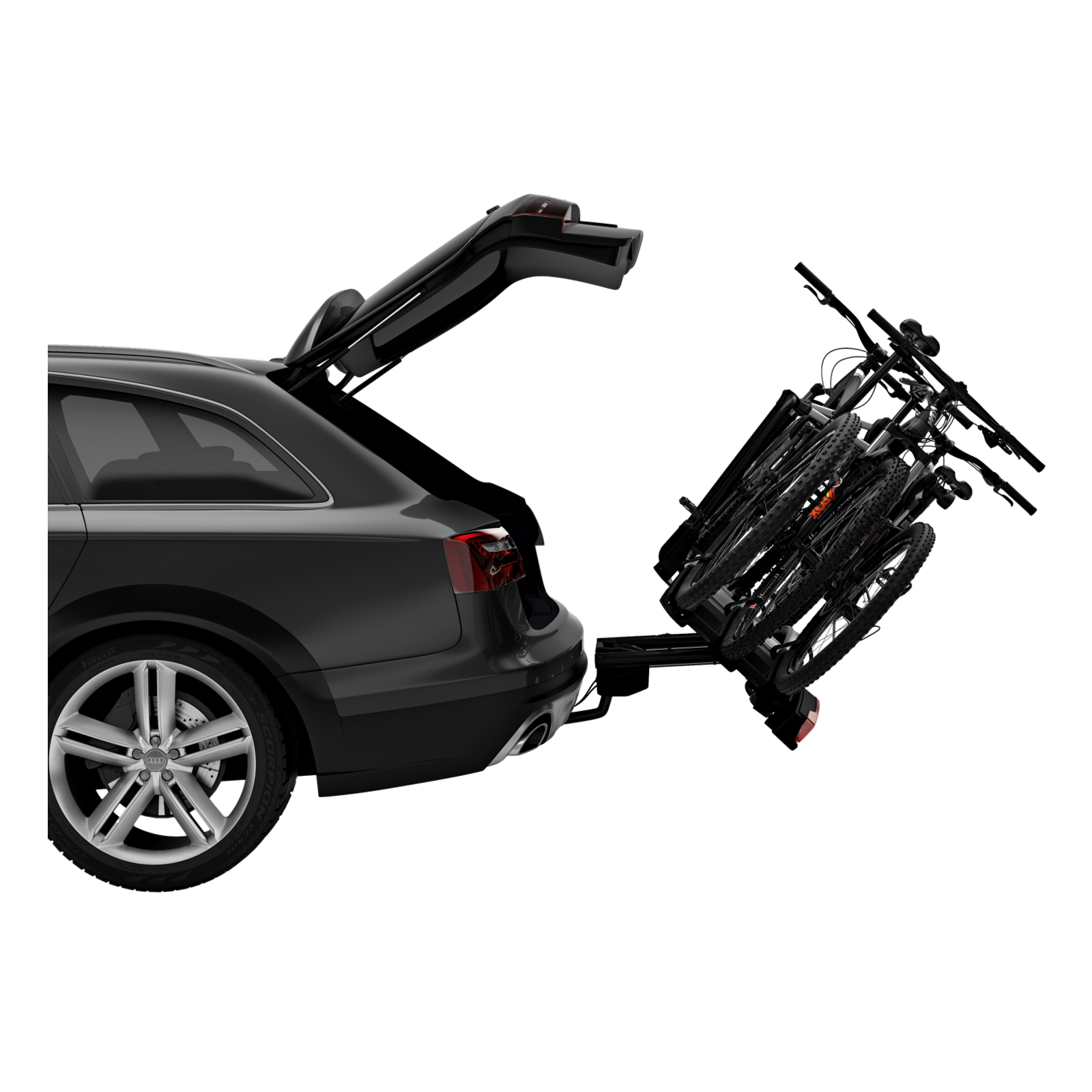 - Praktischer Abklappmechanismus mit Fußpedal ermöglicht einfachen Zugang zum Kofferraum, selbst mit Fahrrädern auf dem Träger.